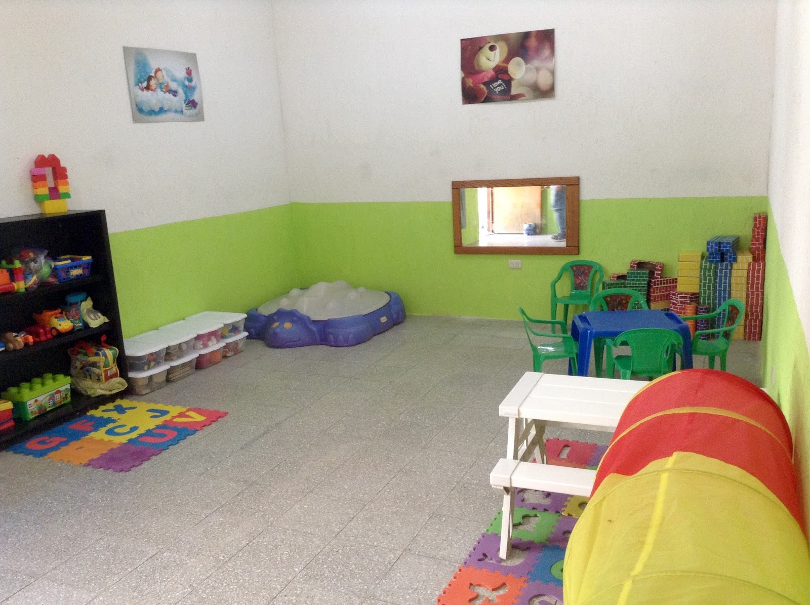 Bessie, Abby, Jordan and Noelia showed up to set up the play room to find a room that was current storage. SO the morning was spent moving beds and mattresses, painting, moping, and sorting previously donated toys. The final project is looking awesome! What do you think? (A HUGE shout out to Isobelle, our photographer!)